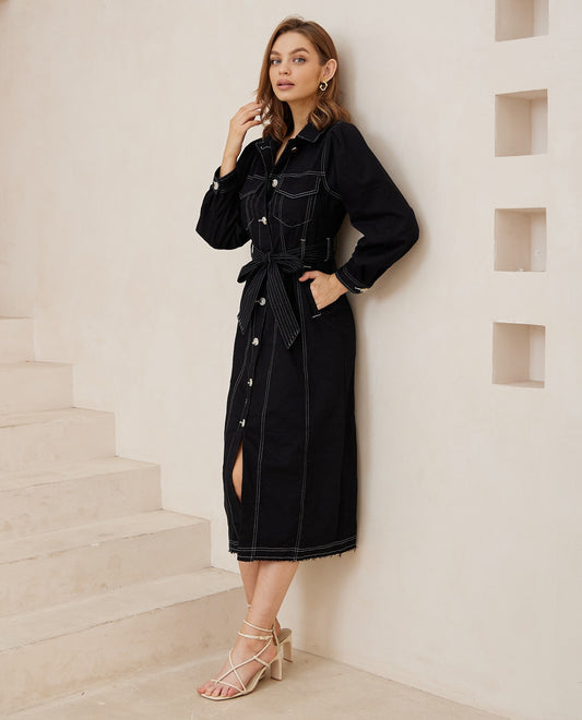 Sasha Denim Maxi Dress - Black