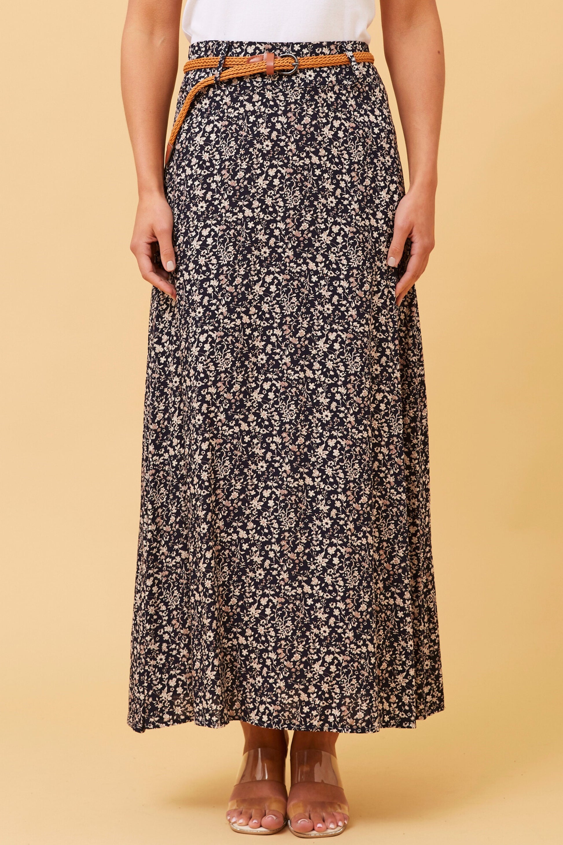 Step into effortless style with the Lisa Maxi Skirt in Navy Floral. This fitted, A-line skirt features a convenient zip closure and comes with a charming rattan belt to cinch your waist perfectly. True to size and flowing to maxi length, it’s a fun and flattering addition to your wardrobe for any sunny day adventure this spring and summer.