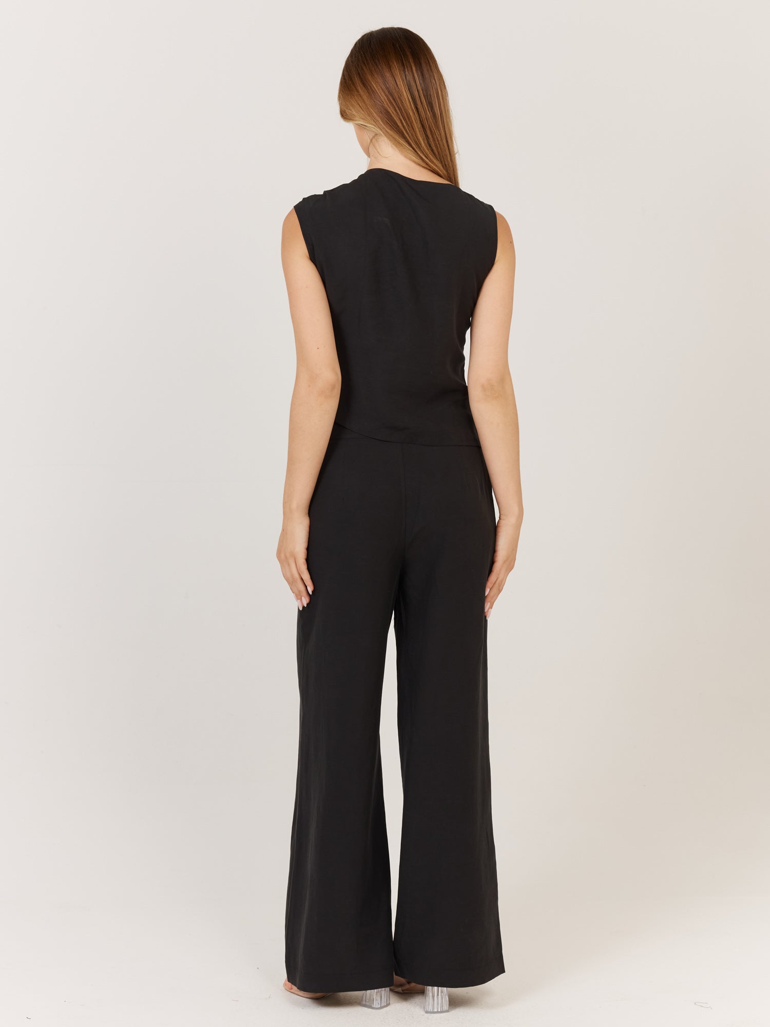 The Sandara Pant effortlessly bridges comfort and sophistication with its thoughtfully designed silhouette. A distinctive cross-over front waist detail adds contemporary flair, while the concealed fly and elastic back waistband deliver practical ease without compromising style. Cut in a flattering regular fit with clean, refined lines, this transeasonal piece transitions seamlessly from professional settings to refined weekend occasions. Versatile, polished, and undeniably elegant.